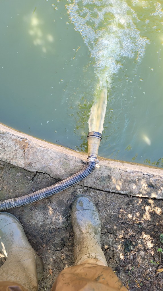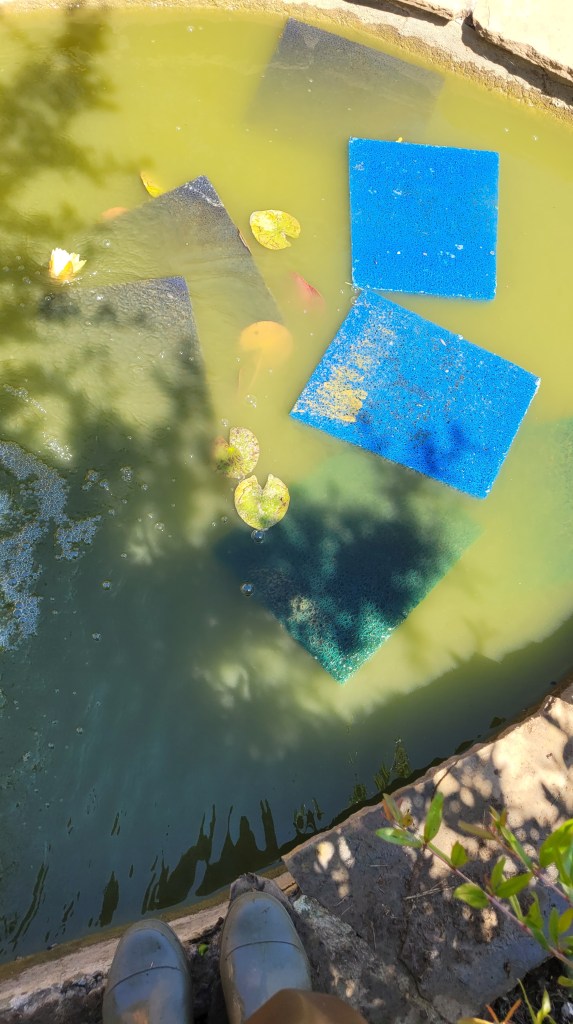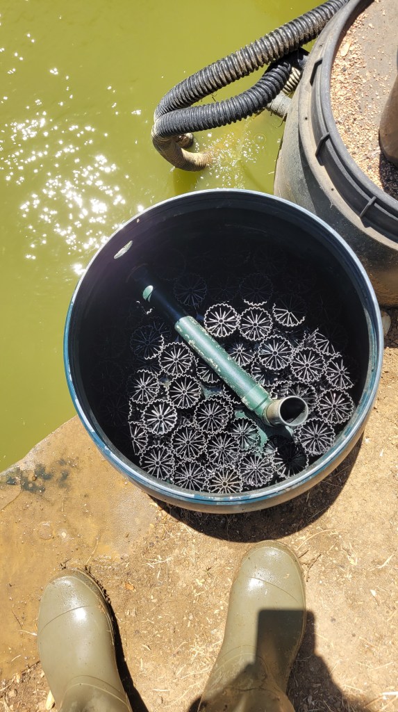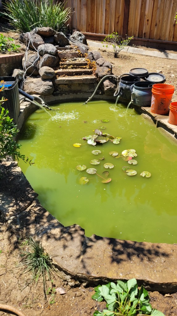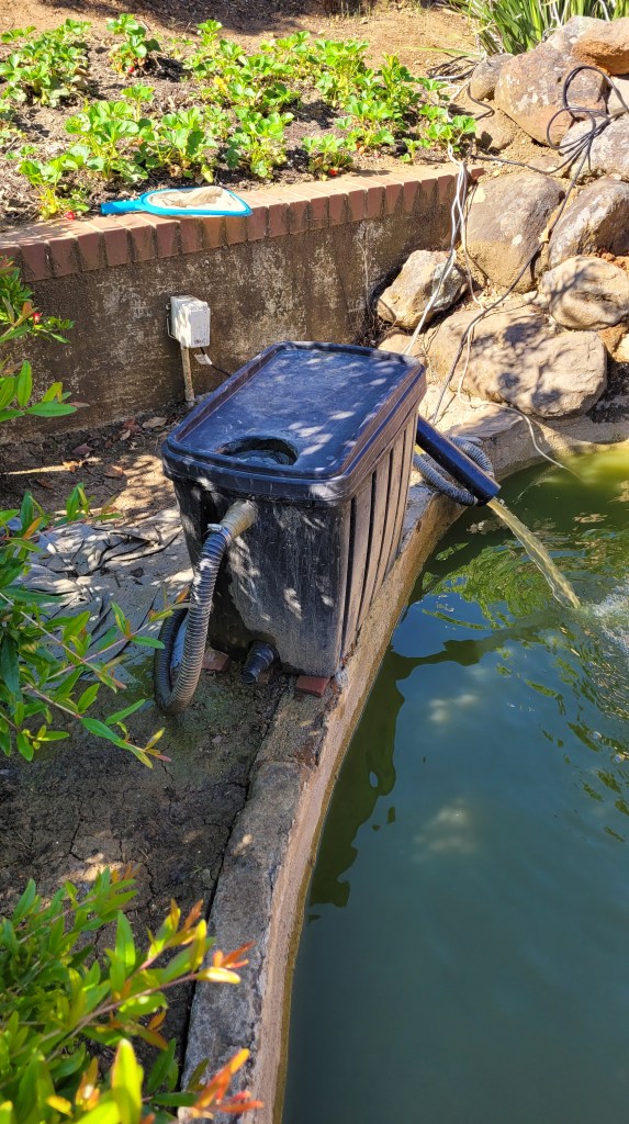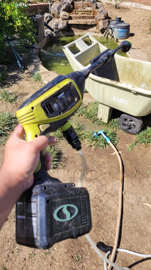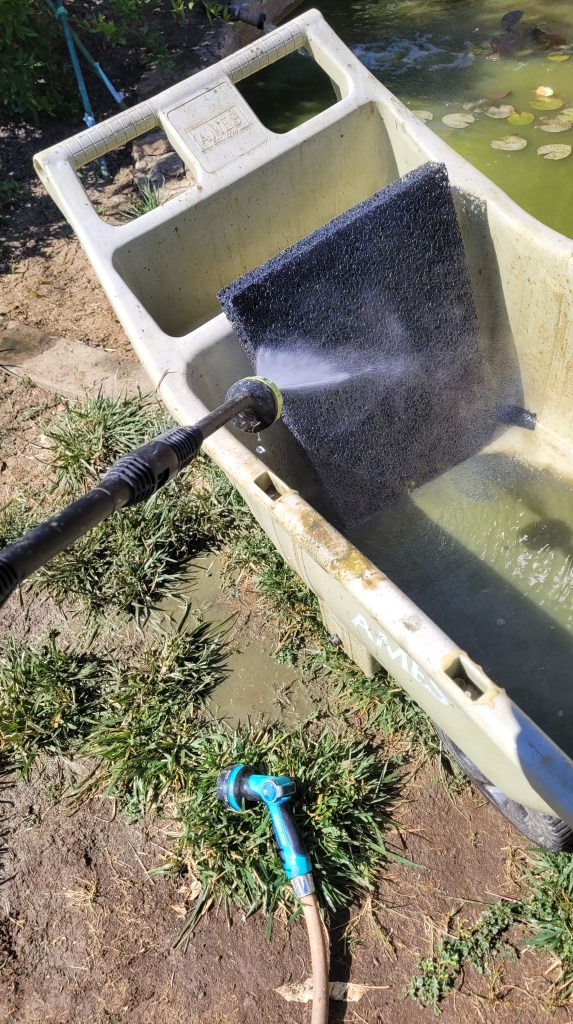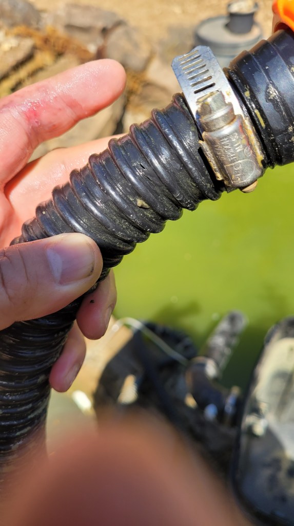 My backyard pond has three biofilters that I connected to a single water pump in a Frankenstein like fashion with pipes everywhere. It works for my purposes and keeps the fish from poisoning themselves, but the main issue is sludge build up if I don’t clean it out. So I did.