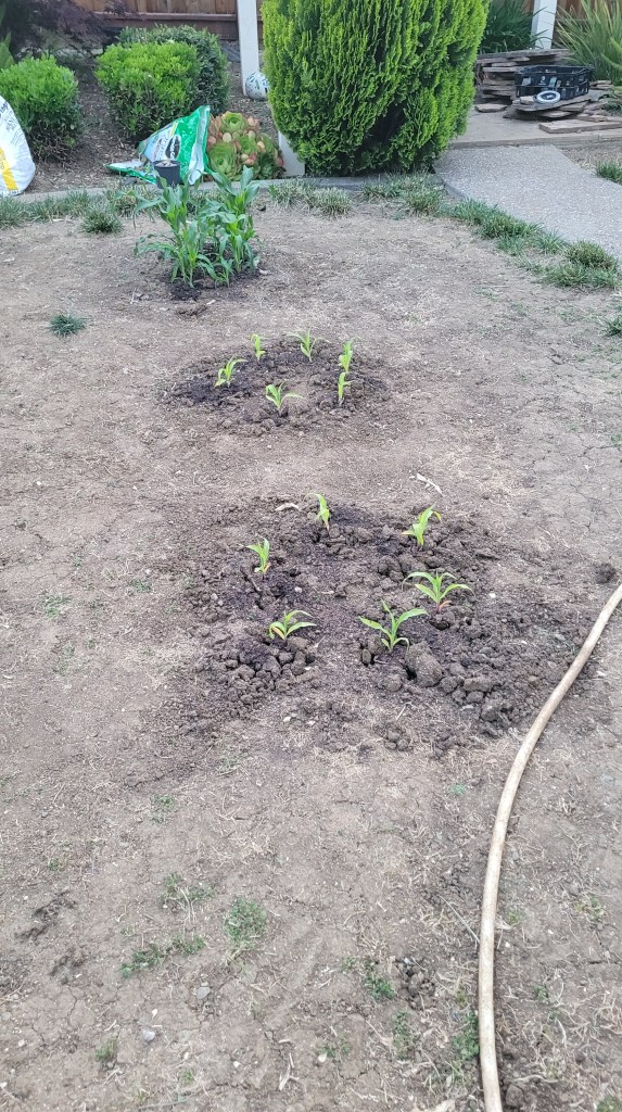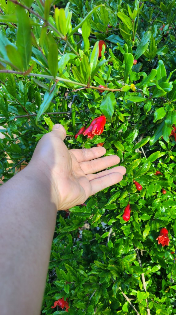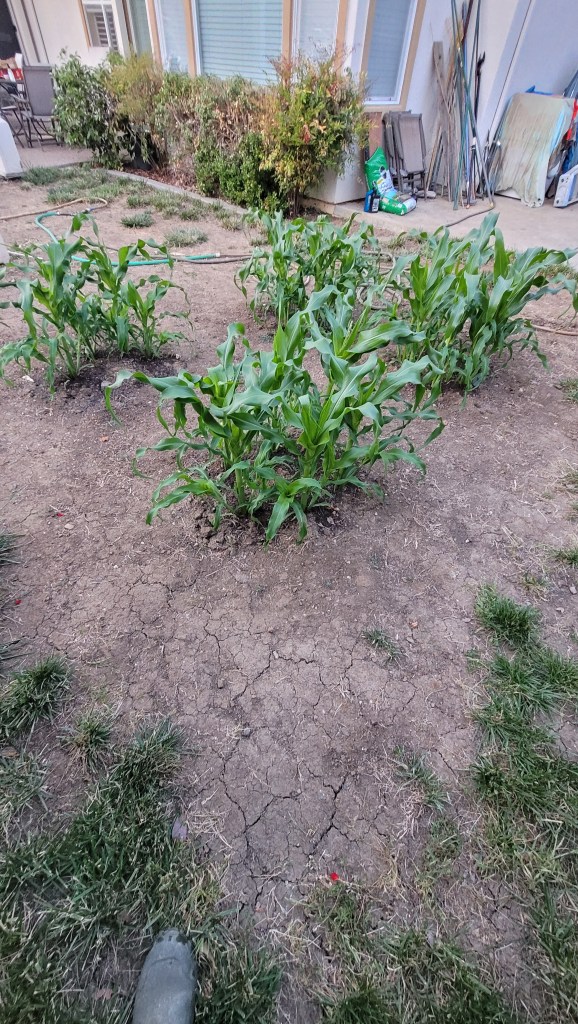 Pictured are pomegranate trees, two in the backyard, two blood orange trees, a pomelo tree, and a bunch of seedlings I am working on. In the ground are corn and beans. I started the corn way way way way too early in February like a mad man. I should have waited until April, but hey! But seeds are cheap and I love watching seeds germinate and sprout. It never gets old. That demonstrates my ability to give life and put my time, talent, and treasure into making things beautiful and hopefully tasty too. I don’t work for free! I expect literal fruits from my labor!!!